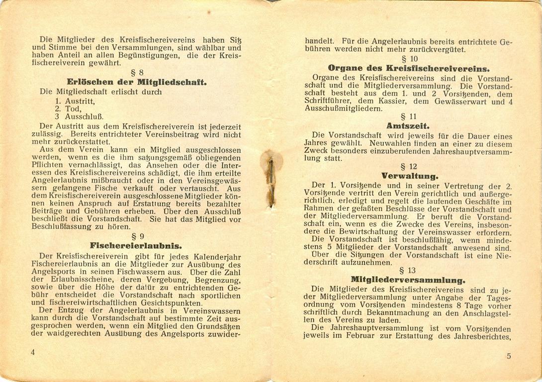 1. Satzung des Kreisfischereivereins 1956